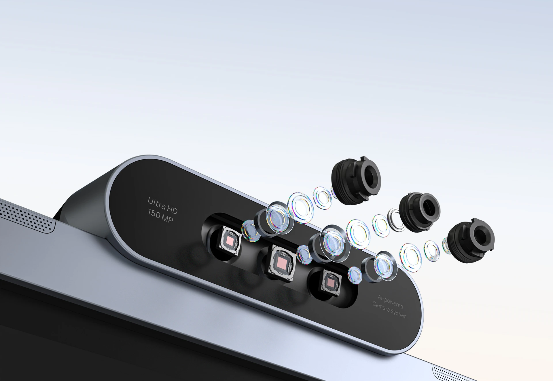 MeetingBoard Pro, telefoto ve geniş açı lenslere sahip entegre üçlü 50 MP kamera sistemi ile donatılmıştır. Bu gelişmiş kamera yapısı, uzaktan bile tüm detayların kristal netliğinde görünmesini sağlar.