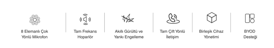 *Speakerphone; mikrofon ve hoparlörün tek bir cihazda birleştiği, katılımcıların kulaklık veya telefon kullanmadan toplantı boyunca net şekilde konuşup dinleyebilmesini sağlayan profesyonel bir ses çözümüdür.